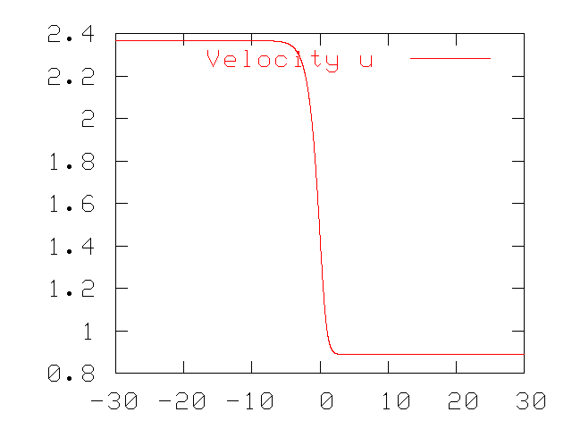 This specific exact solution is available in the weno and clawpack: applications/euler/1D/ViscousShock directories. For the following tests, we use the computational domain, x = [-30,30], inflow/outflow boundary conditions and the parameters