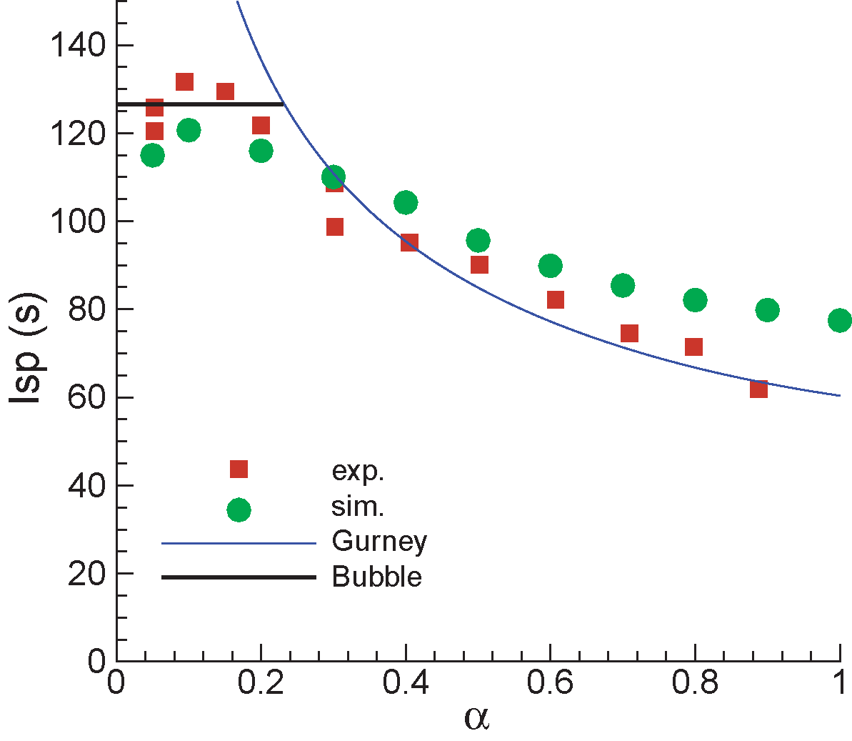 - Comparison of specific impulse given by experiments, simulations and theories.